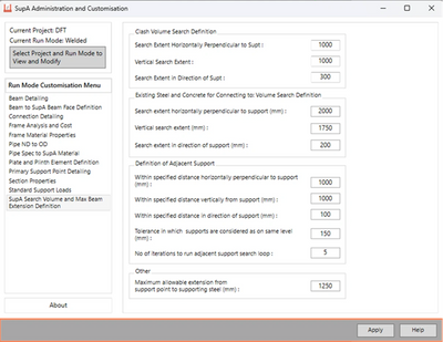 The SupA Frame Generator contains extensive settings for customisation of design details to project and area specific details.